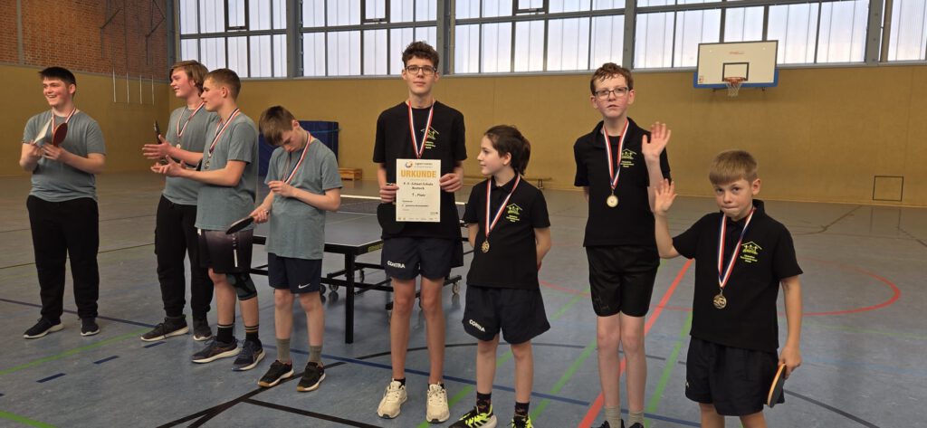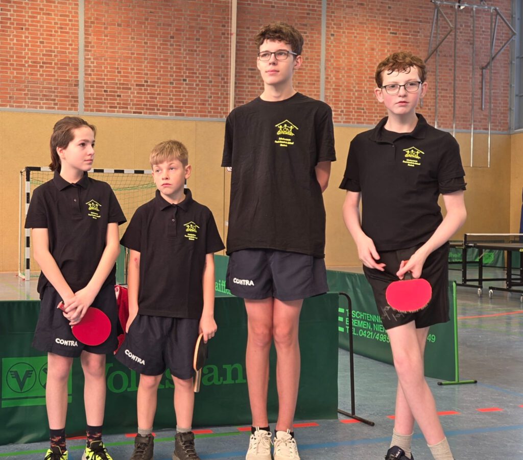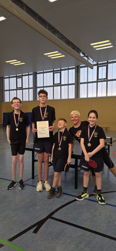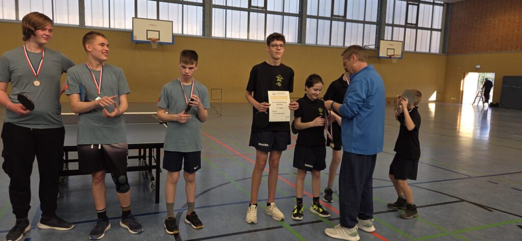 Unsere 4 besten Tischtennisspieler der Schule ( Bennet Levold, Yann Bellmann, Johann Schuldt, Jonas Saß) trainierten seit dem Schulturnier im Dezember für das Landesfinale Mecklenburg-Vorpommern.